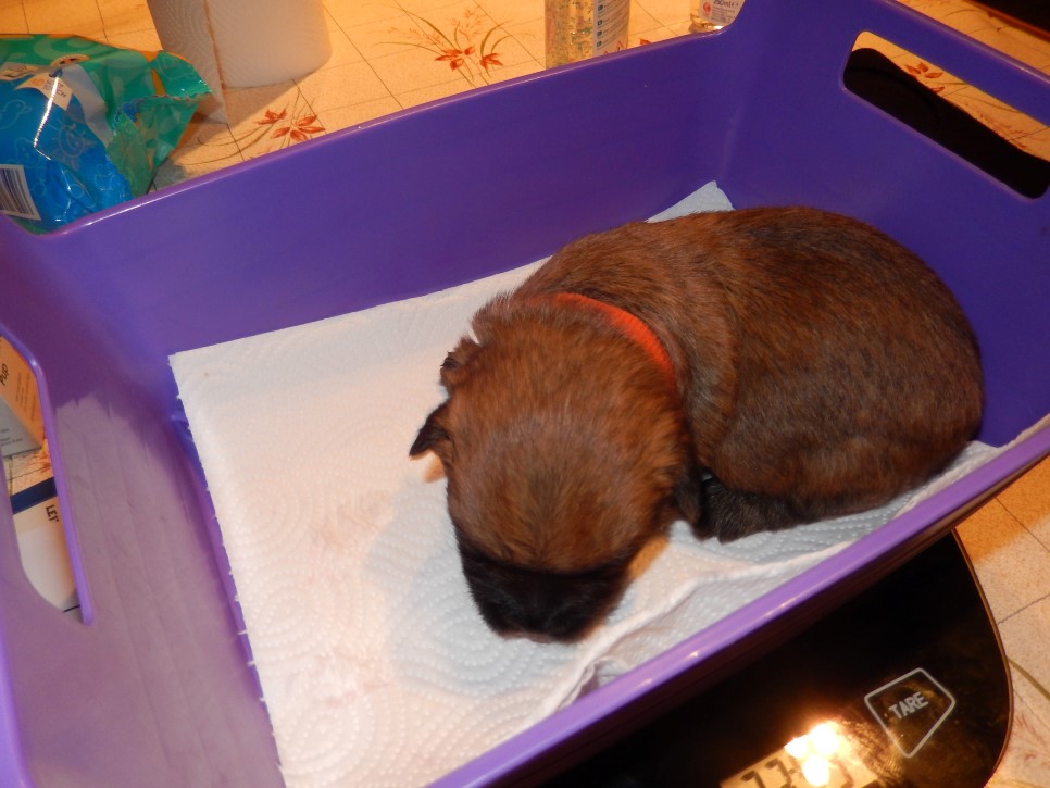 Vandaag nog eens allemaal afzonderlijke foto’s met hun nieuwe gewichtjes. Ze zijn al drie keer zoveel als toen ze geboren zijn. Witje heet vanaf nu bij ons knorretje. Zij is het grommelpotje van de hoop. Ook zijn ze vandaag voor de eerste keer ontwormd. Sommigen vonden het lekker anderen waren er het liefst zo snel zo snel mogelijk vanaf, maar ze hebben het allemaal binnen dat is toch het voornaamste. De oogjes zijn nu allemaal open alhoewel Ozzy zijn mooie ogen liever niet toont. Geniet weer van deze nieuwe foto’s en als je goed kijkt zie je op de foto bij dikkie dik en bij knorretje de oogjes open.